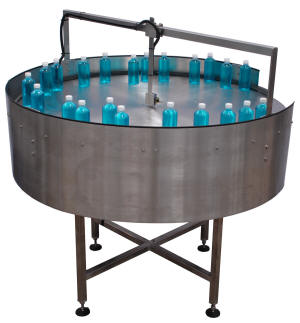 Accumulation tables act as a buffer at the end of a line to enable bottles or similar containers to easily be hand picked for case packing for instance.