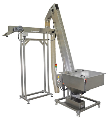 Used to transport caps to a cap sorter located in another room or when the plant layout does not allow for direct connection of the elevator or feeder to the sorter.
